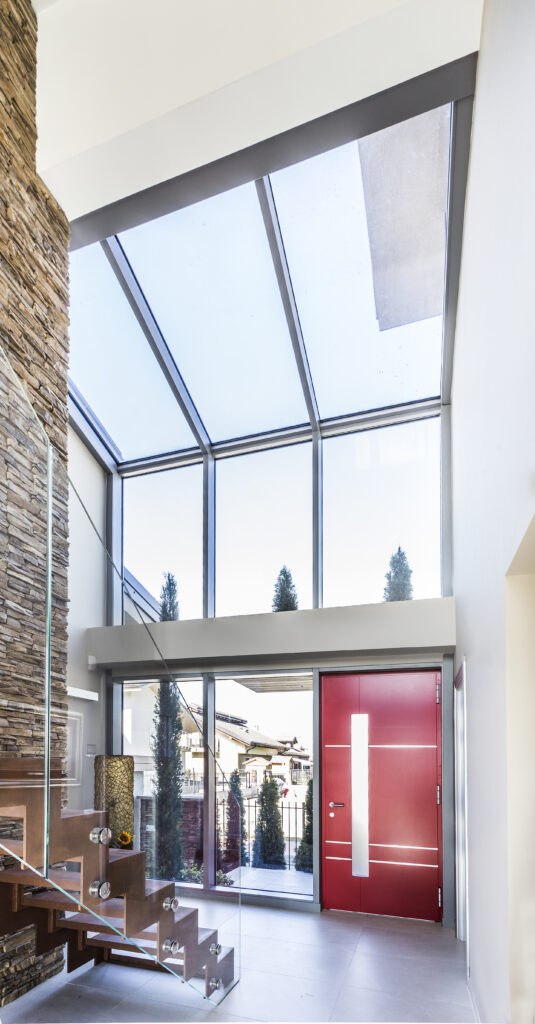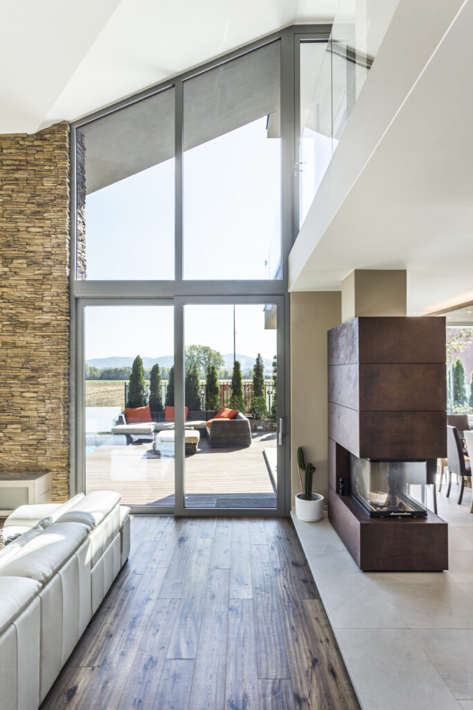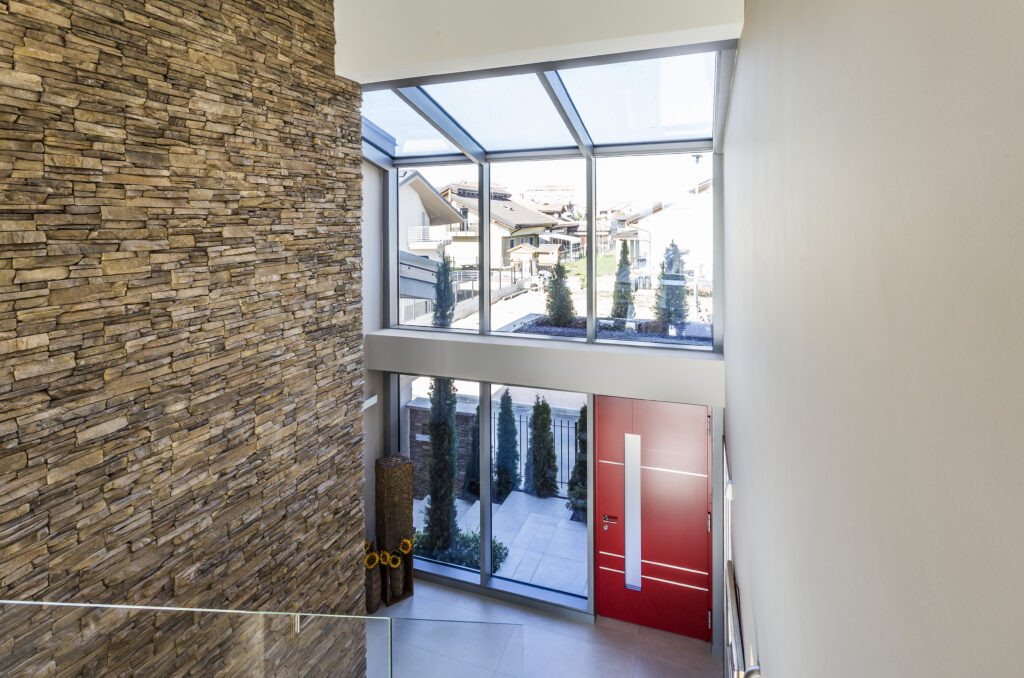 - Scelta di finiture interne ed esterne di prima scelta e rivestimenti con materiali di pregio: elementi effetto legno, pietra a vista nelle murature esterne ed interne, vetro per valorizzare luce e trasparenze
